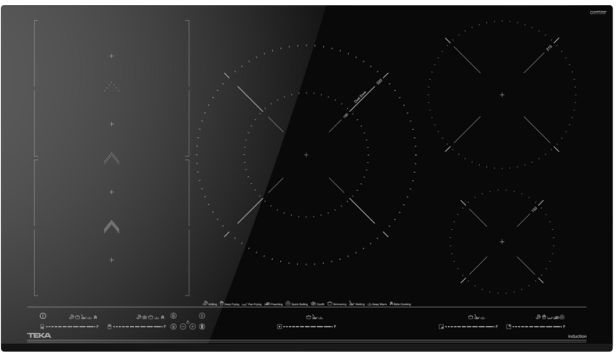 Řada MasterSense; Indukční varná deska 90 cm; 5 varných zón + Flex Slide Cooking; Dotykové ovládání Multislider; Keramické sklo, přední zkosená hrana; 5 indukčních varných zón:; 1 x O 150 mm; 1 x O 215 mm; 1 x 320 x 180 mm; 2 x flex 228 x 200 mm; Speciální funkce vaření s teplotními čidly: vření,; rozpouštění, udržení teploty, grilování, smažení,; fritování, konfitování, pošírování, rychlý var; Funkce Power Plus a Stop&Go; Systém bezpečnostního zablokování se senzorem; akustického signálu; U