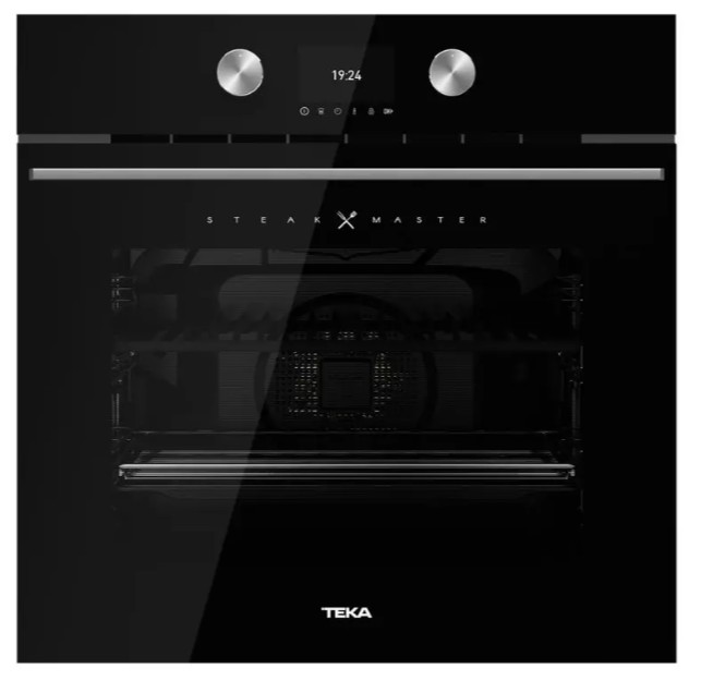 Teka SteakMaster P BK - vestavná trouba • energetická třída A • objem 70 l • maximální jmenovitý výkon 3518 W • napětí 220–?240 V • 12 funkcí pro přípravu pokrmů • 20 automatických programů pro přípravu masa • pečení s osobním asistentem • otočné ovladače • TFT displej • funkce rychlého předehřátí • čisticí systém HydroClean PRO • pyrolytické čištění • technologie SurroundTemp • funkce gril • dvířka se čtyřmi skly • technologie SoftClose • posuvné teleskopické pojezdy • litinová mřížka na steaky • silikonové rukavice • profesionální nůž • 59,5×59,5×53,7+2,2 cm