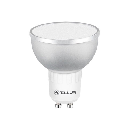 Smart LED RGB žárovka, 5W, patice GU10, vydává teplé světlo, chromatičnost 2700K - 6500K, WiFi, kompatibilní s Google Assistant a Amazon Alexa, nastavení RGB, chromatičnosti a jasu světla, stmívatelnost, dálkové ovládání pomocí aplikace