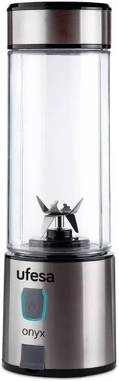 Mixování probíhá v mixovací nádobě z tritanu, která se může pochlubit celkovou kapacitou až 400 ml. Do nádoby stačí umístit zvolené suroviny a následně na ni našroubovat základnu USB smoothie mixéru Ufesa Onyx BS2400. Po skončení mixování základnu opět jednoduše uvolníte. V balení naleznete sportovní víko s otvorem, které je možné upevnit na mixovací nádobu. |