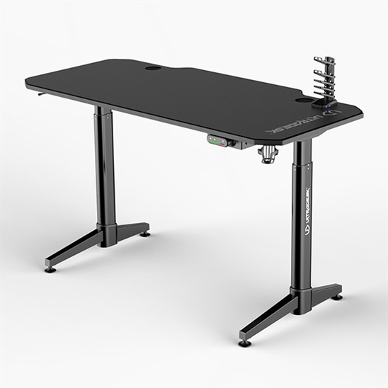 ULTRADESK Herní stůl LEVEL BLACK, 140x66cm, 72-124cm, elektricky nastavitelná výška, s XXL podložkou pod myš, držák sluchátek i ná