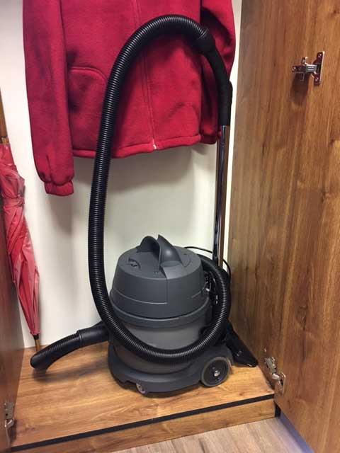Vysavač je dále vybaven profesionálními zátěžovými kolečky s gumovým dezénem, která jsou šetrná k podlahám a možností regulace podtlaku na rukojeti hadice. Délka přívodního kabelu činí 12 metrů.