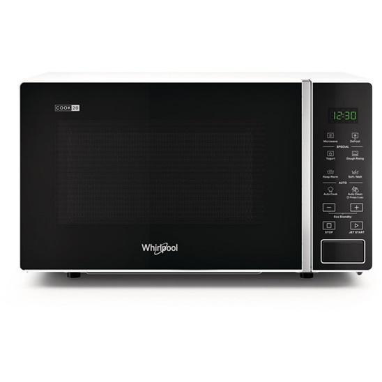 objem 20 l, mikrovlnný výkon 700 W, elektronické ovládání, 5 výkonových stupňů, lakovaný vnitřní povrch, talíř o průměru 24,5 cm, rozměry: 26,2 x 45,2 x 35 cm, barva bílá