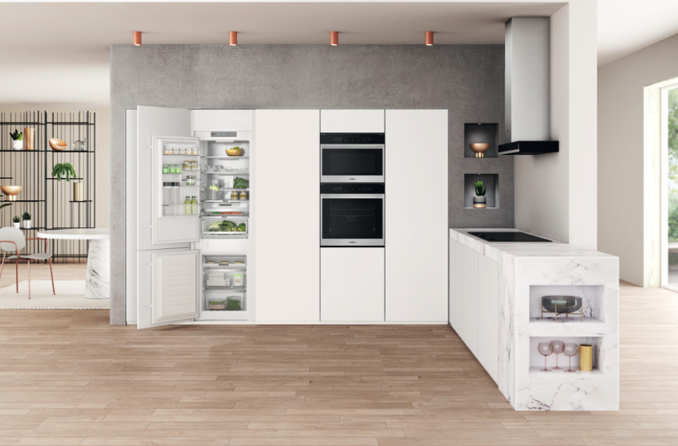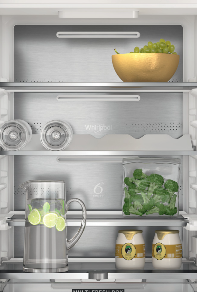 Přednosti této vestavné kombinované chladničky Whirlpool: bílá barva. Vysoký spotřebič, který vyhoví potřebám vaší rodiny. Skleněné police, které poskytují pevnost i eleganci. Ventilátor, který zajišťuje plynulé a rovnoměrné proudění vzduchu v prostoru spotřebiče pro doonalou cirkulaci vzduchu. Senzory 6. SMYSL, které automaticky snižují teplotu uvnitř spotřebiče po přidání nových potravin, čímž snižují spotřebu energie.